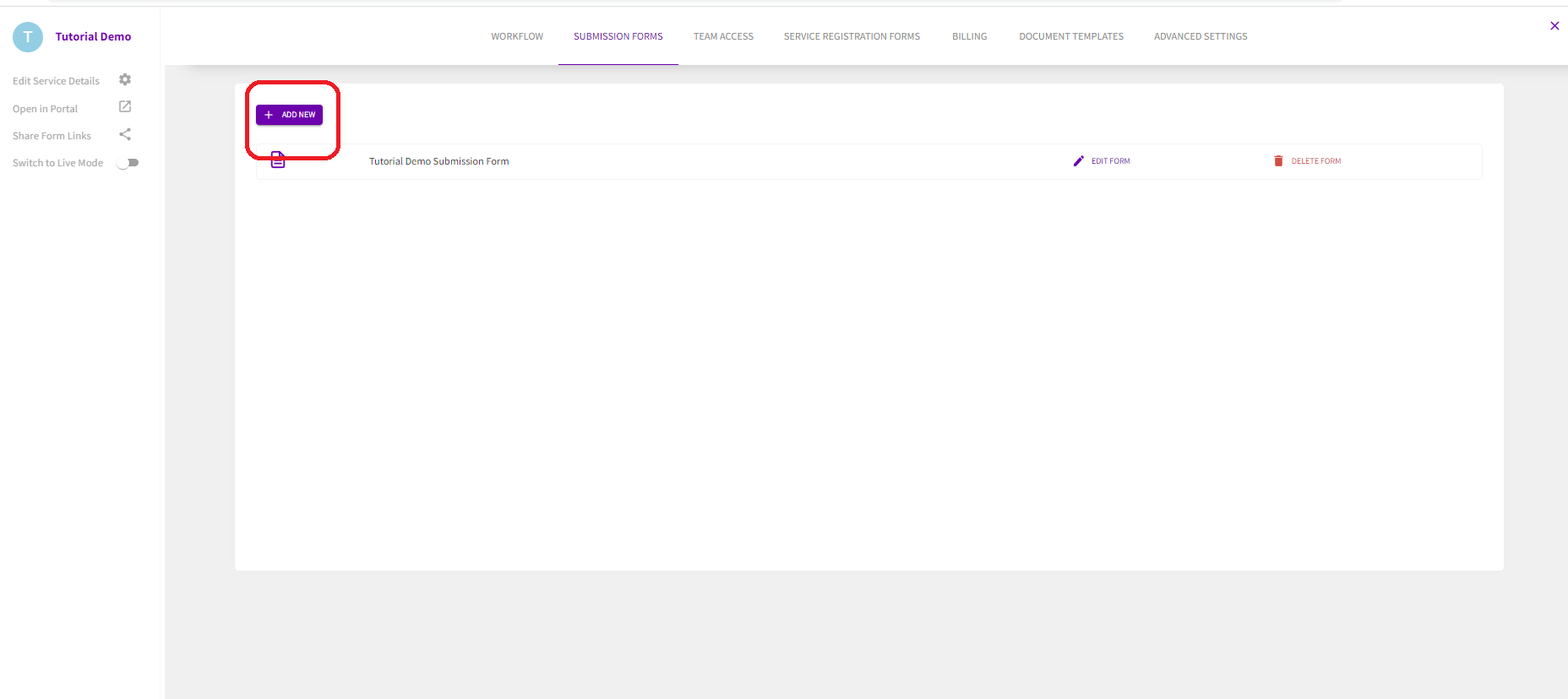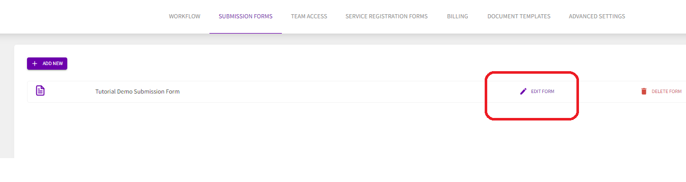* To edit an existing form, click on the "Edit Form" button next to the form title
