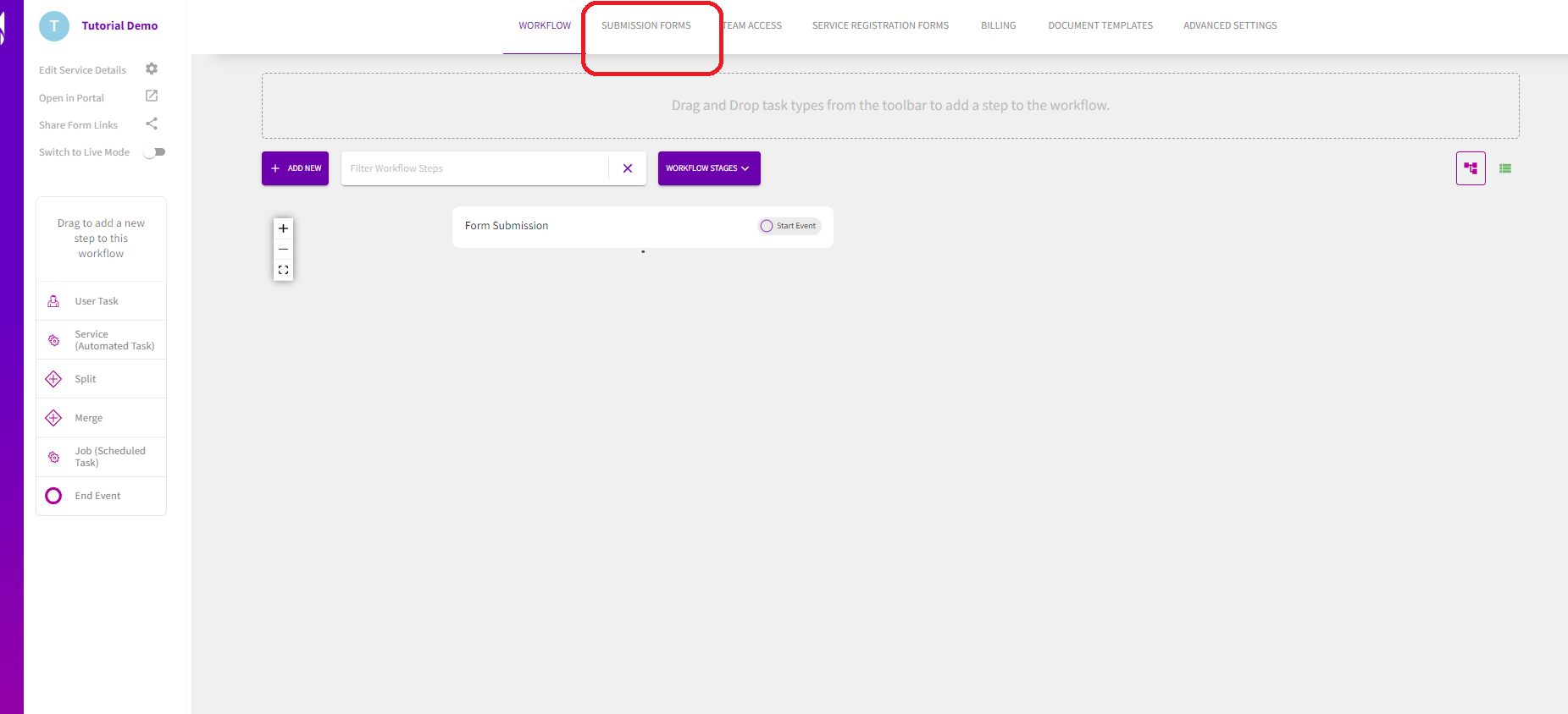 A submission form in OneStop is a form that allows users to submit data and initiate a workflow process. Submission forms are the main entry points to OneStop workflows.